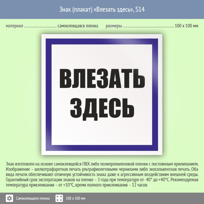 Знак (плакат) «Влезать здесь», S14 (пленка, 100х100 мм) в Новокузнецке купить
