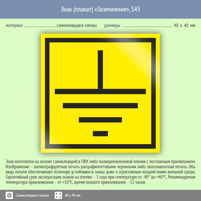 Знак (плакат) «Заземление», S45 (25 штук пленка, 40х40 мм) в Новокузнецке купить