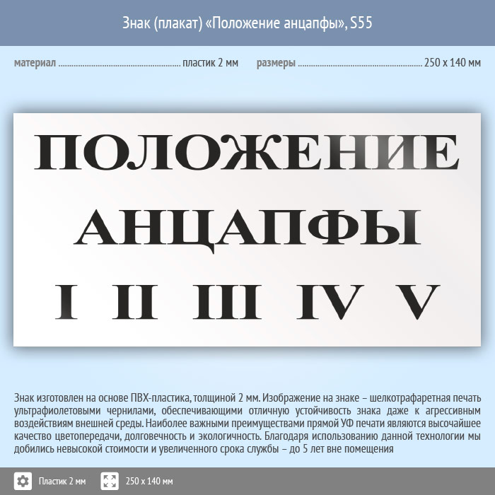 Знак (плакат) «Положение анцапфы», S55 (пластик, 250х140 мм) в Новокузнецке купить