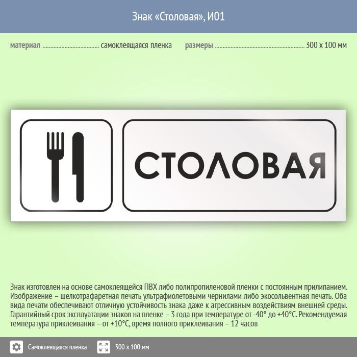 Знак «Столовая», И01 (пленка, 300х100 мм) в Новокузнецке купить