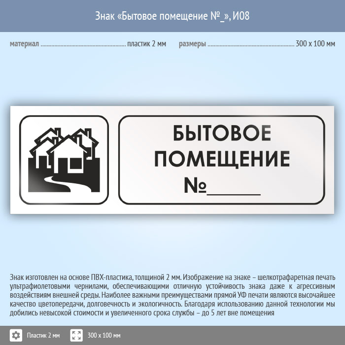 Знак «Бытовое помещение №_», И08 (пластик, 300х100 мм) в Новокузнецке купить