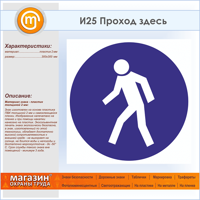 Знак «Проход здесь», И25 (пластик, 300х300 мм) в Новокузнецке купить