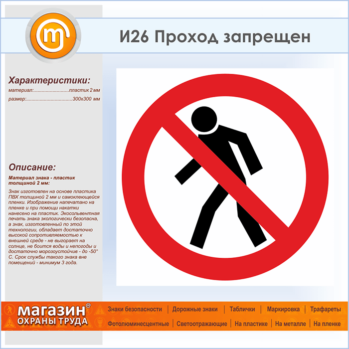 Знак «Проход запрещен», И26 (пластик, 300х300 мм) в Новокузнецке купить