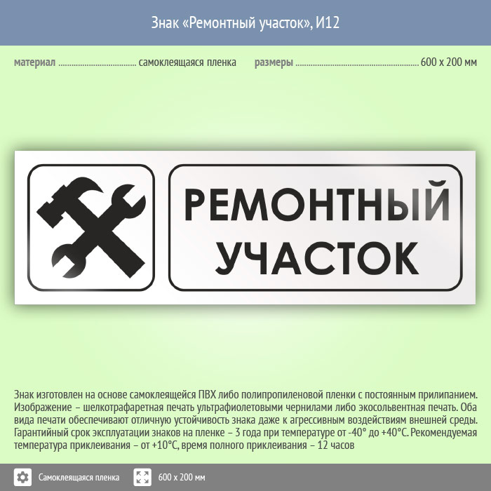 Знак «Ремонтный участок», И12 (пленка, 600х200 мм) в Новокузнецке купить