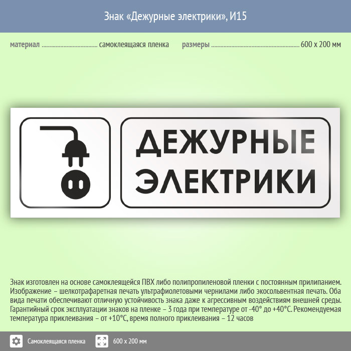 Знак «Дежурные электрики», И15 (пленка, 600х200 мм) в Новокузнецке купить