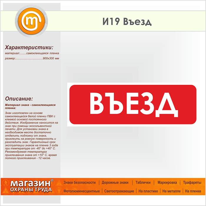 Знак «Въезд», И19 (пленка, 900х300 мм) в Новокузнецке купить