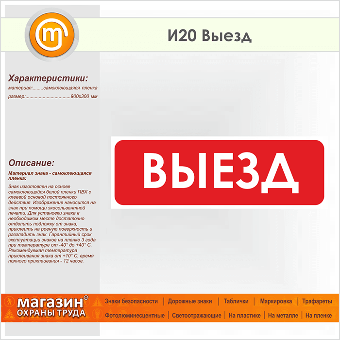 Знак «Выезд», И20 (пленка, 900х300 мм) в Новокузнецке купить