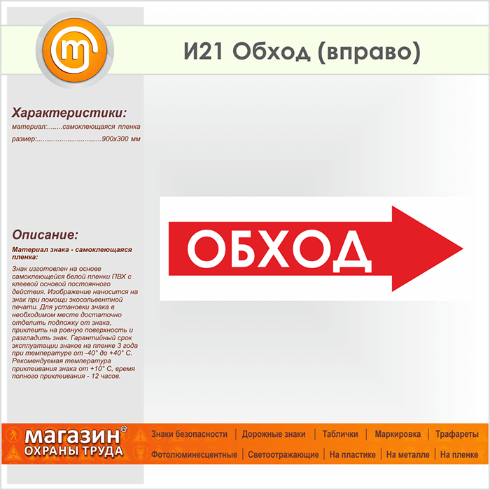Знак «Обход (вправо)», И21 (пленка, 900х300 мм) в Новокузнецке купить