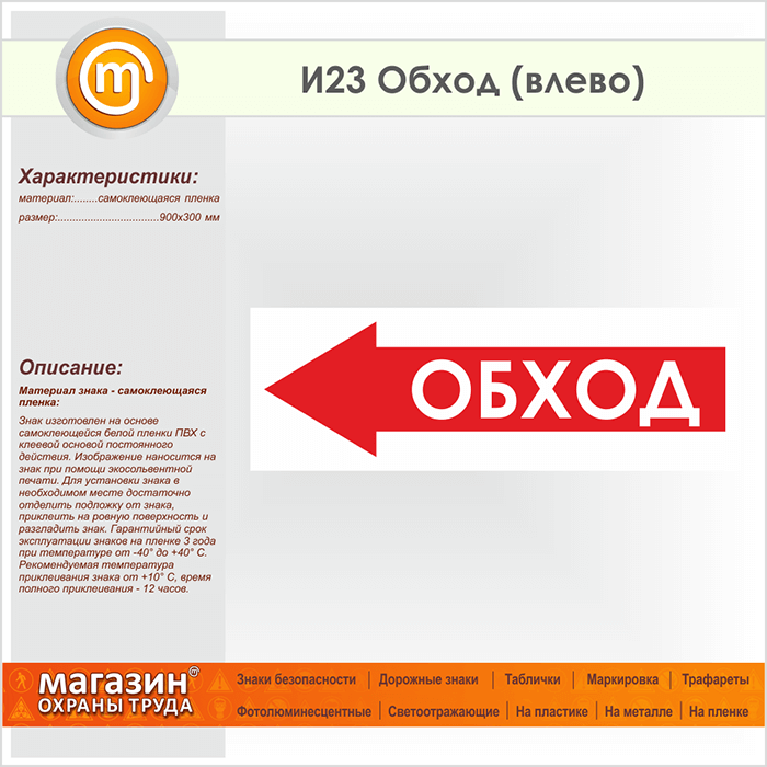 Знак «Обход (влево)», И23 (пленка, 900х300 мм) в Новокузнецке купить