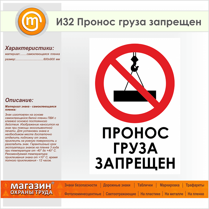 Знак «Пронос груза запрещен», И32 (пленка, 600х900 мм) в Новокузнецке купить