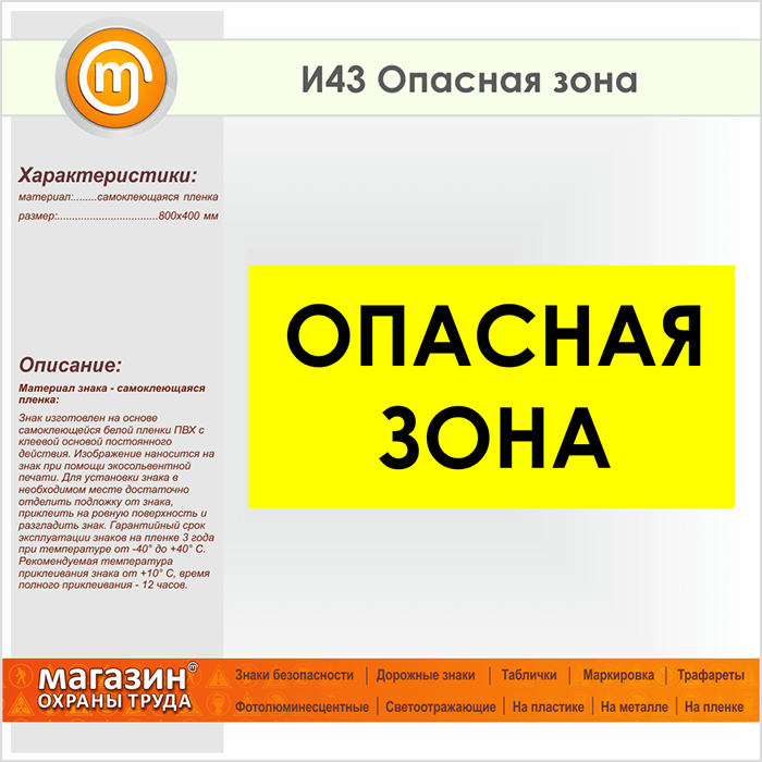 Знак «Опасная зона», И43 (пленка, 800х400 мм) в Новокузнецке купить
