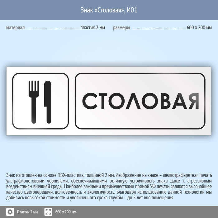 Знак «Столовая», И01 (пластик, 600х200 мм) в Новокузнецке купить