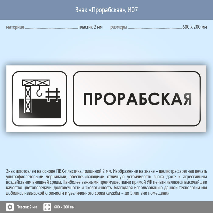 Знак «Прорабская», И07 (пластик, 600х200 мм) в Новокузнецке купить