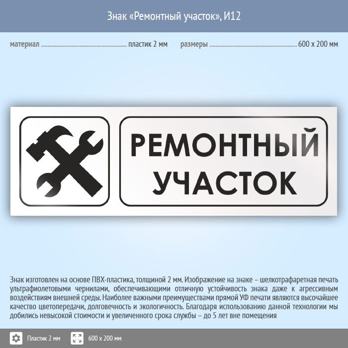 Знак «Ремонтный участок», И12 (пластик, 600х200 мм) в Новокузнецке купить