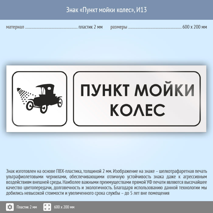 Знак «Пункт мойки колес», И13 (пластик, 600х200 мм) в Новокузнецке купить