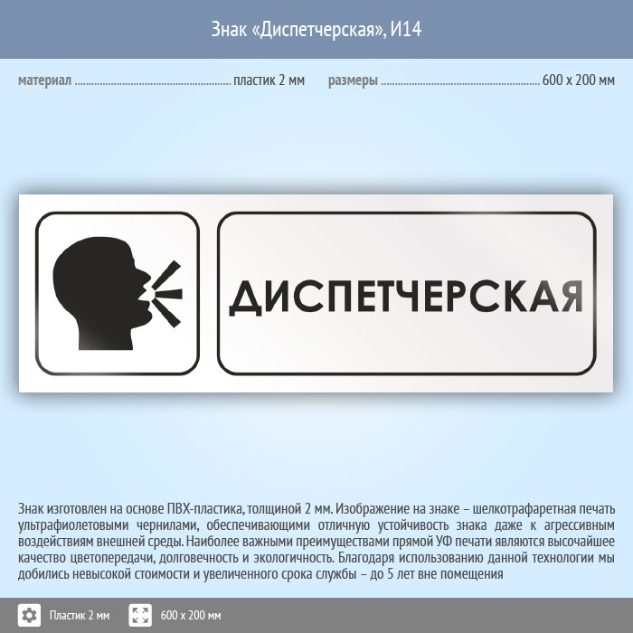 Знак «Диспетчерская», И14 (пластик, 600х200 мм) в Новокузнецке купить