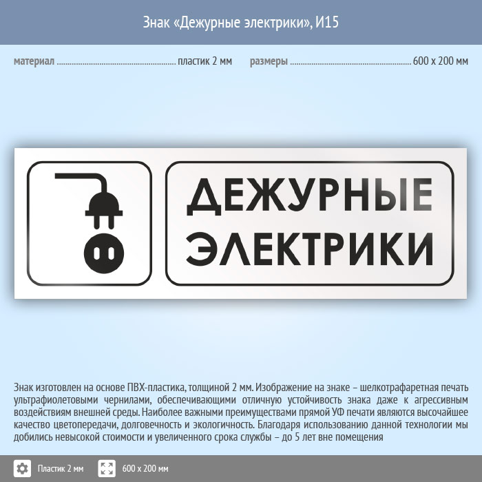 Знак «Дежурные электрики», И15 (пластик, 600х200 мм) в Новокузнецке купить
