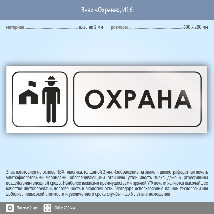 Знак «Охрана», И16 (пластик, 600х200 мм) в Новокузнецке купить