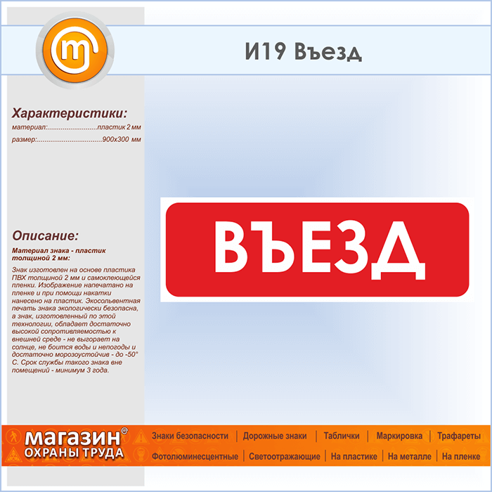 Знак «Въезд», И19 (пластик, 900х300 мм) в Новокузнецке купить
