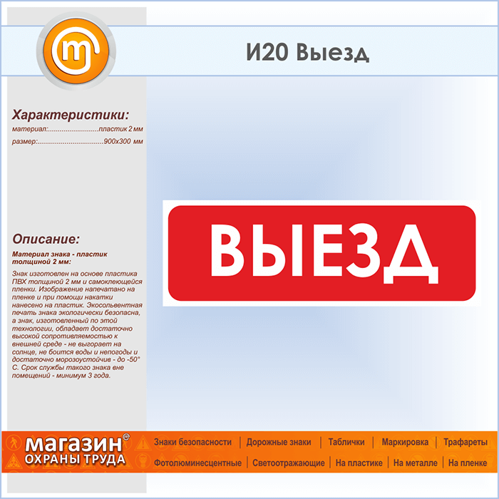 Знак «Выезд», И20 (пластик, 900х300 мм) в Новокузнецке купить