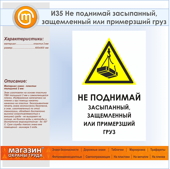 Знак «Не поднимай засыпанный, защемленный или примерзший груз», И35 (пластик, 600х900 мм) в Новокузнецке купить