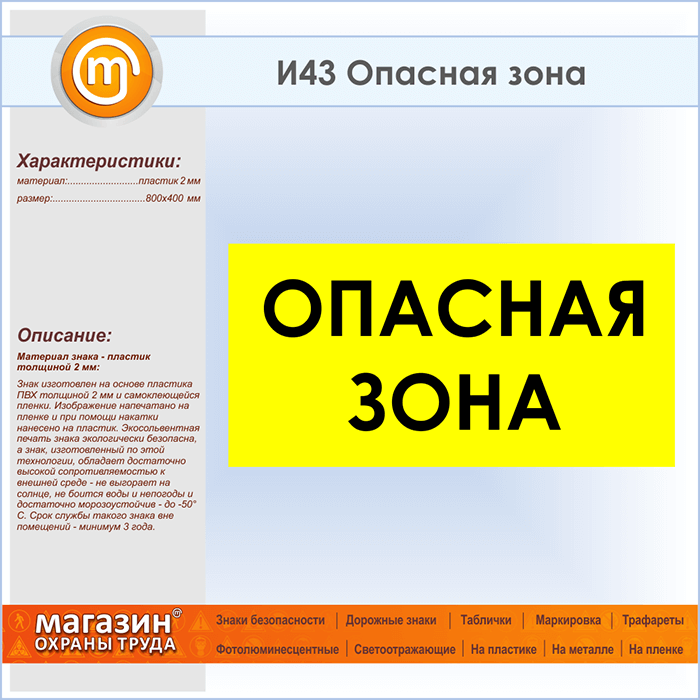 Знак «Опасная зона», И43 (пластик, 800х400 мм) в Новокузнецке купить