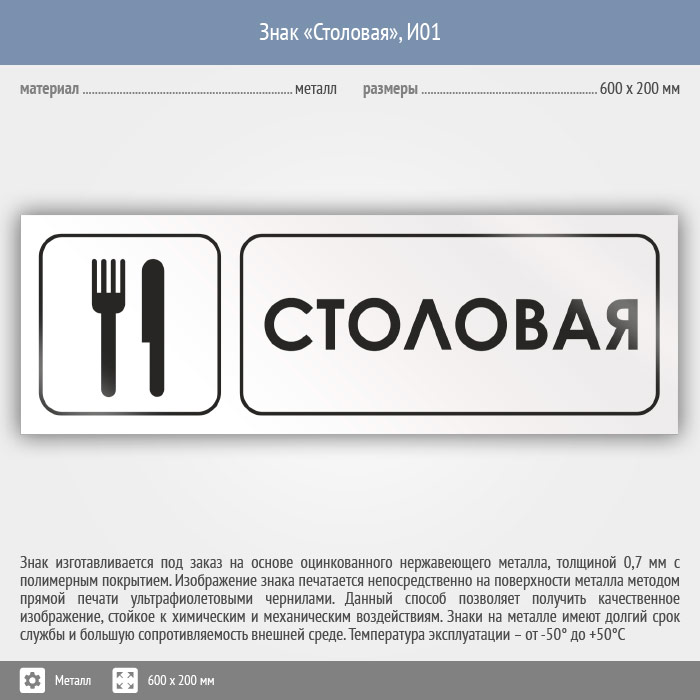 Знак «Столовая», И01 (металл, 600х200 мм) в Новокузнецке купить