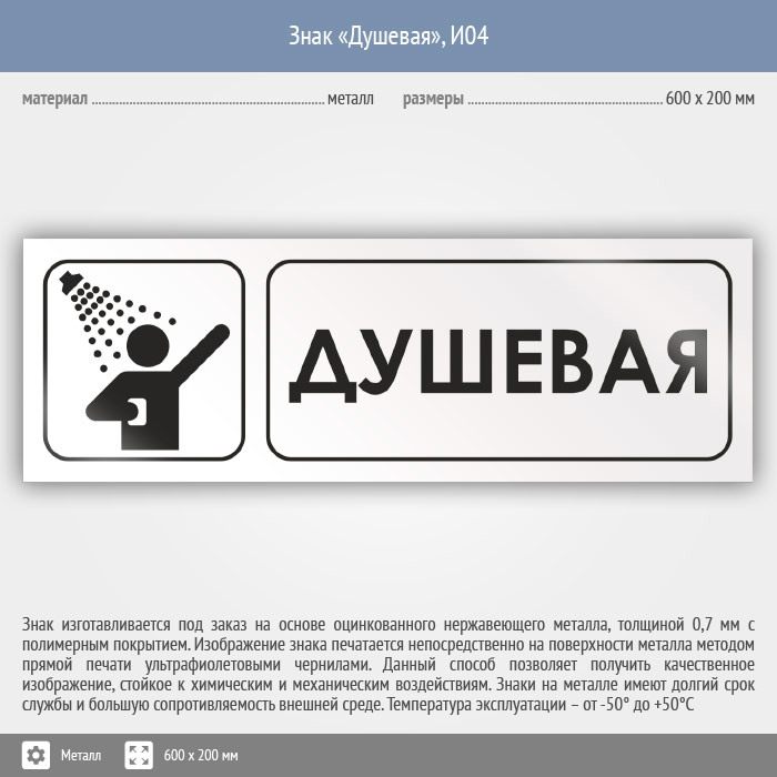 Знак «Душевая», И04 (металл, 600х200 мм) в Новокузнецке купить