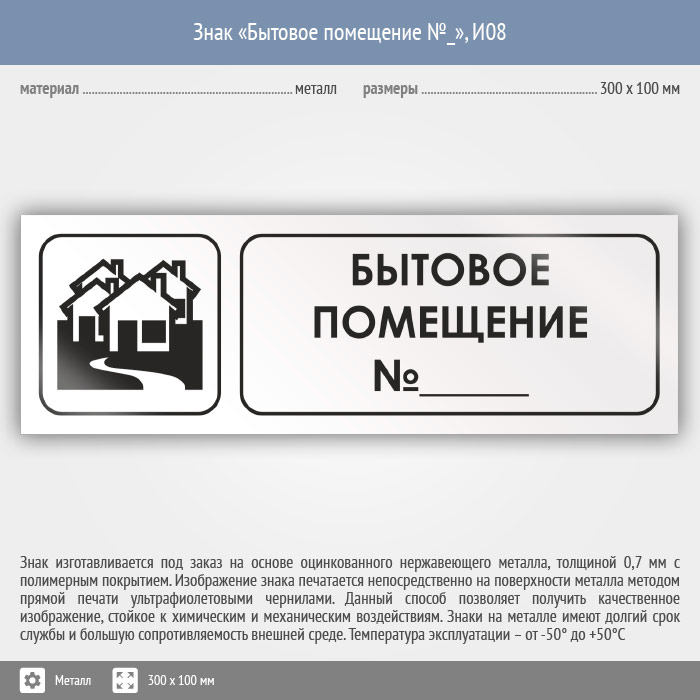 Знак «Бытовое помещение №_», И08 (металл, 300х100 мм) в Новокузнецке купить