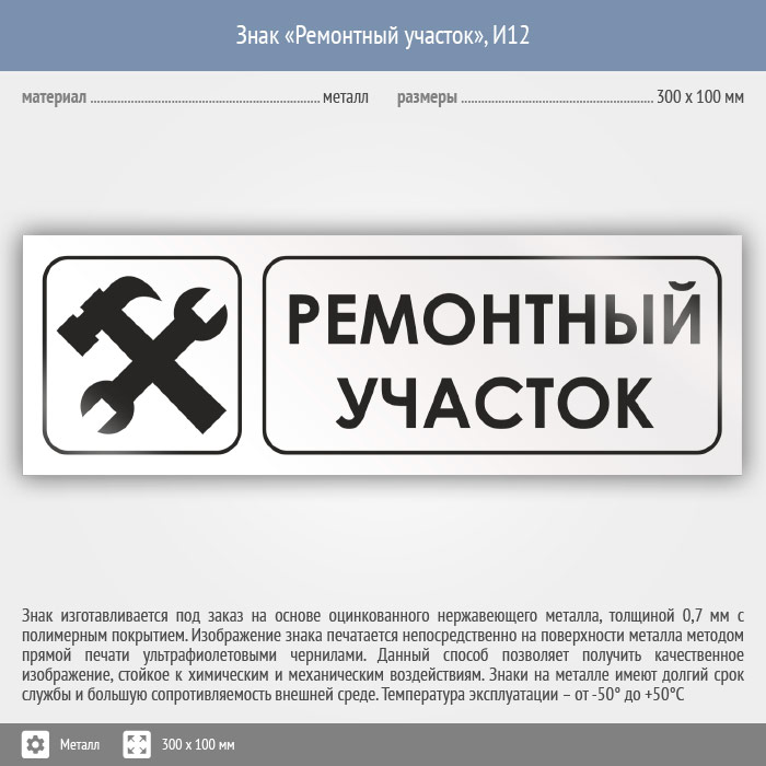 Знак «Ремонтный участок», И12 (металл, 300х100 мм) в Новокузнецке купить