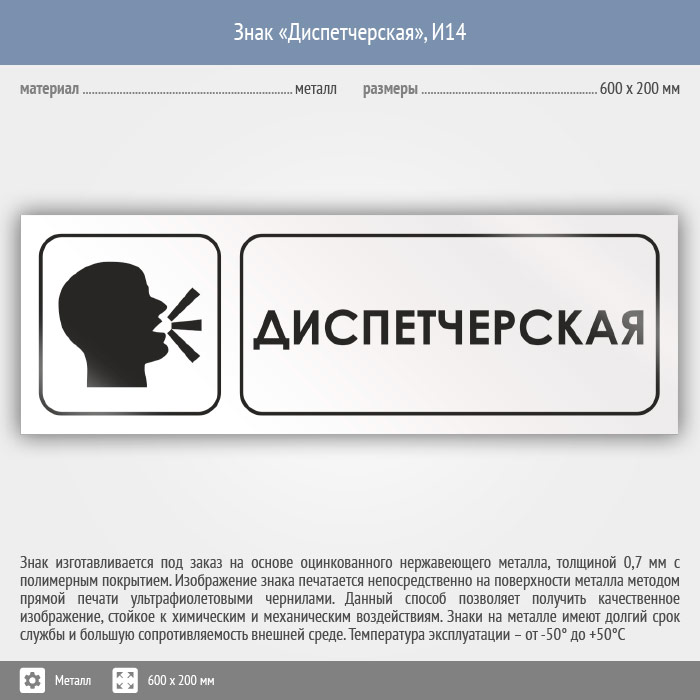 Знак «Диспетчерская», И14 (металл, 600х200 мм) в Новокузнецке купить
