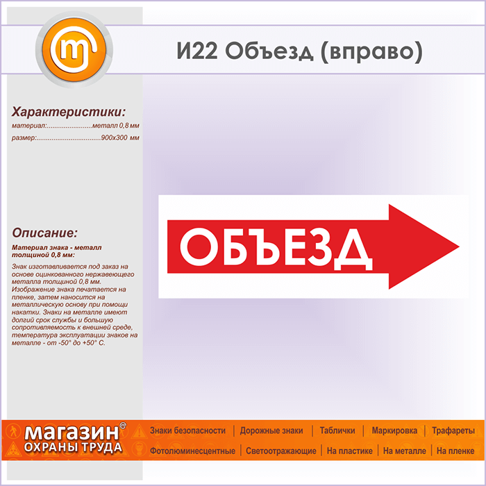 Знак «Объезд (вправо)», И22 (металл, 900х300 мм) в Новокузнецке купить