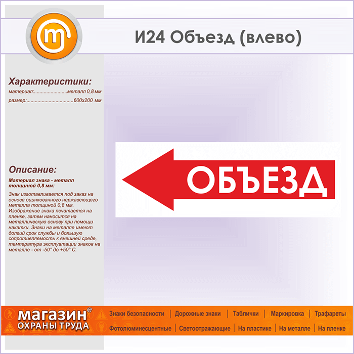 Знак «Объезд (влево)», И24 (металл, 600х200 мм) в Новокузнецке купить