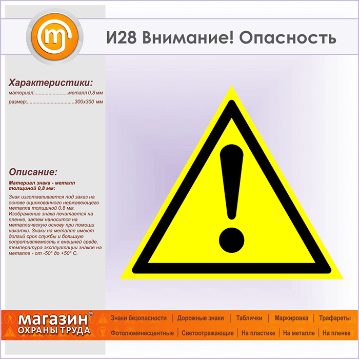 Знак «Внимание! Опасность», И28 (металл, сторона 300 мм) в Новокузнецке купить
