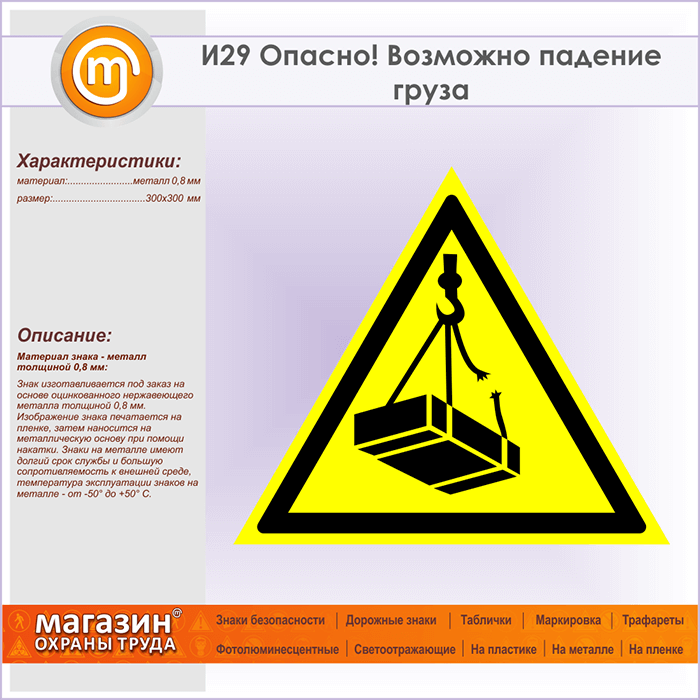 Знак «Опасно! Возможно падение груза», И29 (металл, сторона 300 мм) в Новокузнецке купить