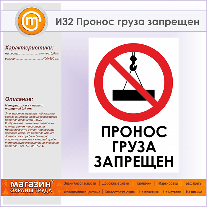 Знак «Пронос груза запрещен», И32 (металл, 400х600 мм) в Новокузнецке купить