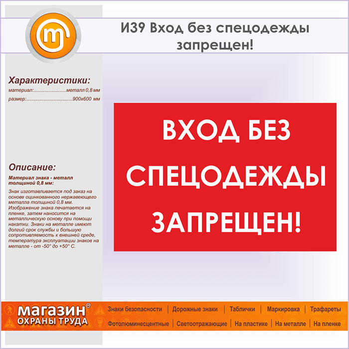 Знак «Вход без спецодежды запрещен!», И39 (металл, 900х600 мм) в Новокузнецке купить