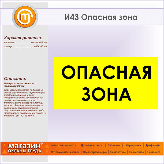 Знак «Опасная зона», И43 (металл, 600х300 мм) в Новокузнецке купить