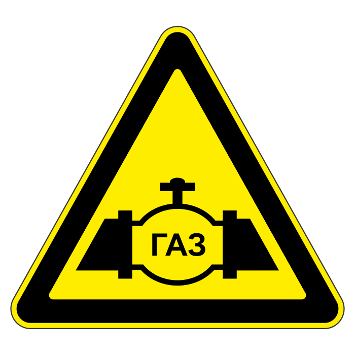 Знак «Осторожно газопровод», МГ-2 (металл 0,8 мм, II типоразмер: сторона 900 мм, С/О пленка: тип Б высокоинтенсивная) в Новокузнецке купить