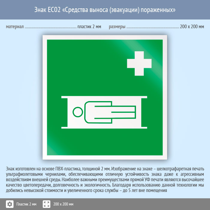 Знак EC02 «Средства выноса (эвакуации) пораженных» (пластик, 200х200 мм) в Новокузнецке купить