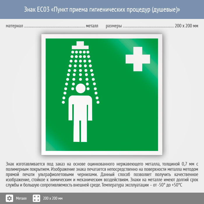 Знак EC03 «Пункт приема гигиенических процедур (душевые)» (металл, 200х200 мм) в Новокузнецке купить