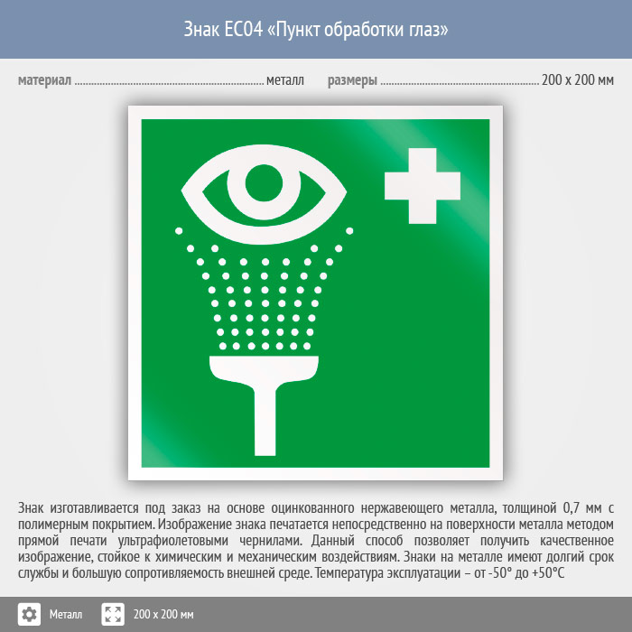 Знак EC04 «Пункт обработки глаз» (металл, 200х200 мм) в Новокузнецке купить