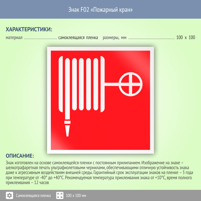 Знак F02 «Пожарный кран» (пленка, 100х100 мм) в Новокузнецке купить