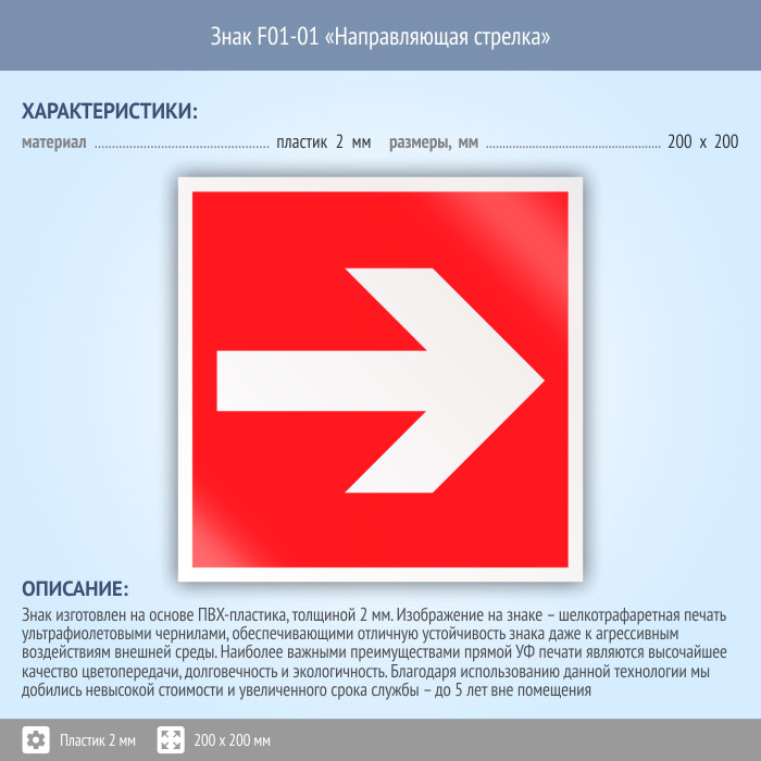 Знак F01-01 «Направляющая стрелка» (пластик, 200х200 мм) в Новокузнецке купить