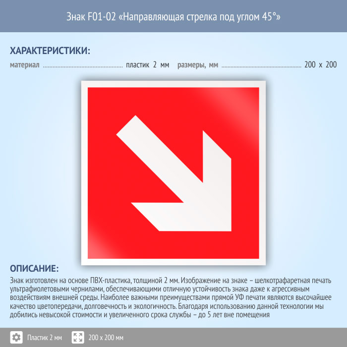 Знак F01-02 «Направляющая стрелка под углом 45°» (пластик, 200х200 мм) в Новокузнецке купить