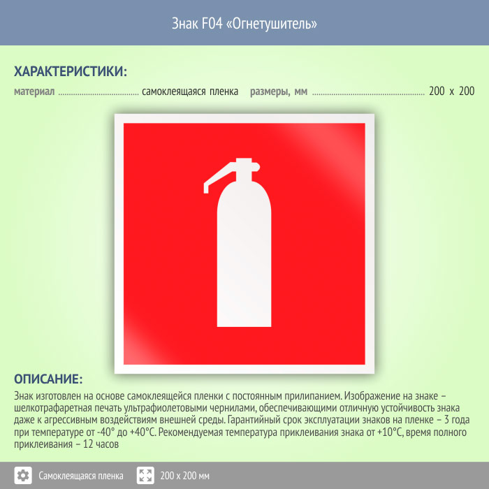 Знак F04 «Огнетушитель» (пленка, 200х200 мм) в Новокузнецке купить