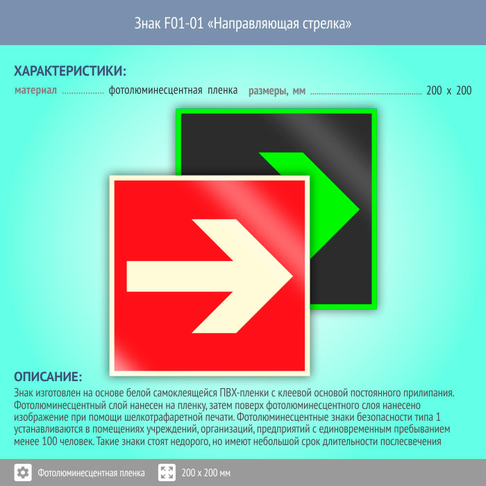 Знак F01-01 «Направляющая стрелка» (фотолюминесцентная пленка, 200х200 мм) в Новокузнецке купить