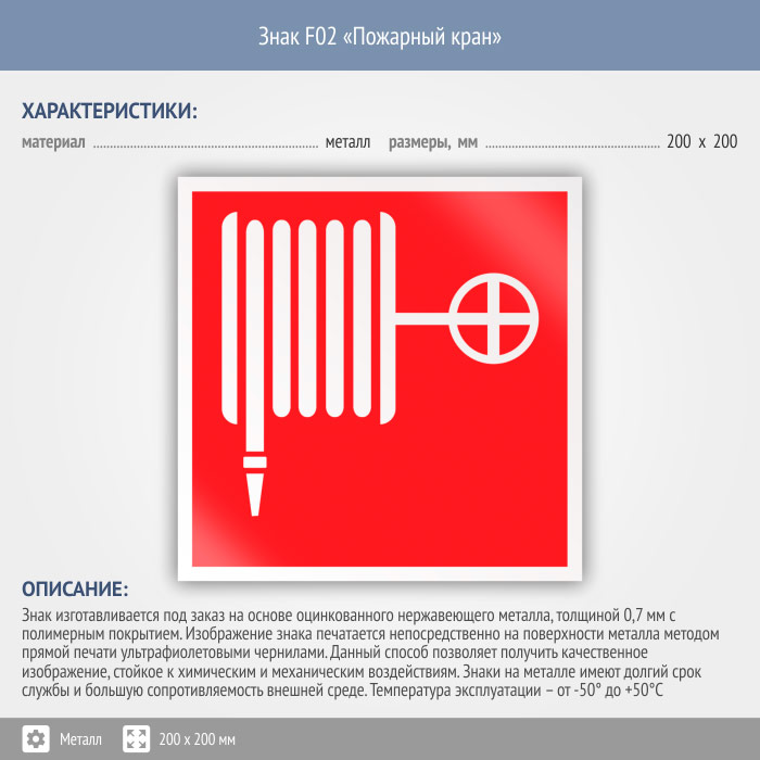 Знак F02 «Пожарный кран» (металл, 200х200 мм) в Новокузнецке купить